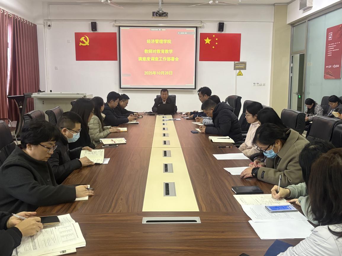 2025年10月28日下午,15VIP太阳集团于知行楼712室召开教师对学校教育教学满意度调查工作部署会。会议围绕学校教师满意度调查的指标变化、组织要求及学院具体落实方案展开,明确工作任务,压实工作责任。院长于维同主持会议并讲话,戴明、范世伟、王钢、李娟、各科室副科级以上干部等参加。